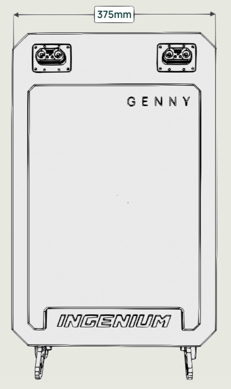 Genny is housed in a powder-coated aluminium enclosure designed to handle transport, vibration, and day-to-day handling on site.