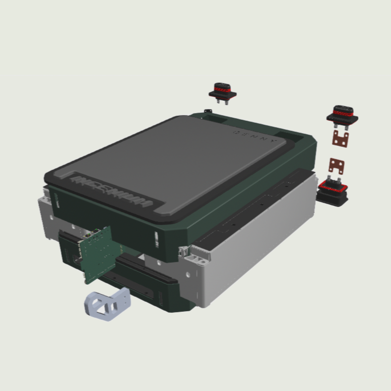 Genny is a rugged portable power pack combining a 5.4 kWh LiFePO₄ battery with a stack-on inverter option, delivering reliable 230 V AC power wherever mains power isn’t available.