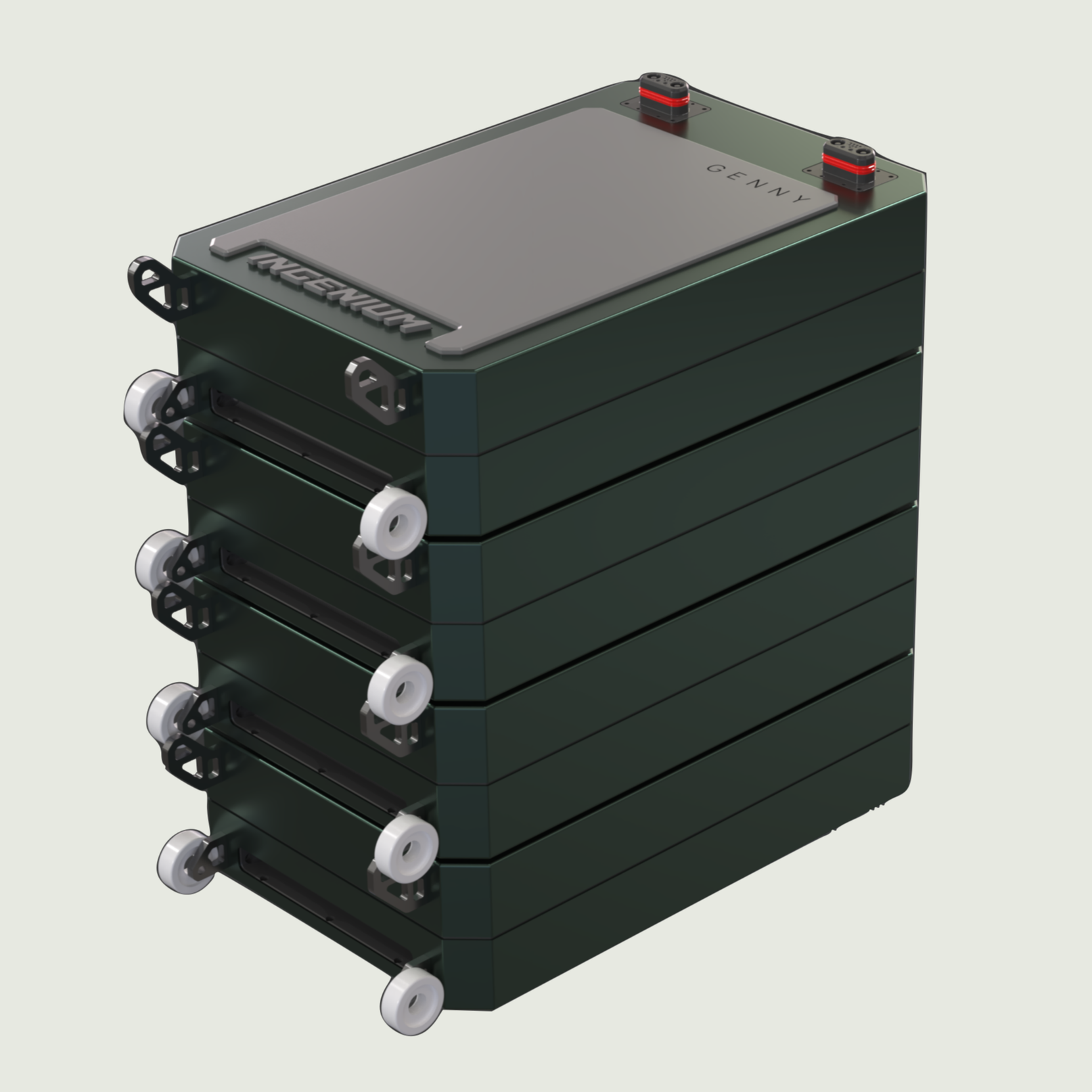 Genny is a rugged 5.4 kWh portable power pack with stack-on inverter options delivering clean 230 V AC power wherever grid power isn’t available.